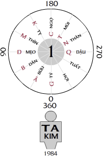 1@/ Độ số 90 khắc TA. Vào năm Bính Dần, Đinh Mão [ 1986 – 1987 ] hành HỎA cách TA KIM 90 độ số về hướng tương lai khắc ngược về TA KIM hiện tại ( chiều khắc là chiều ngịch kim đồng hồ)(nhà Giáp 1).