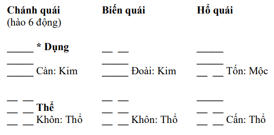 Thể sinh Dụng: nhiều việc tổn hao, ly tán phòng đạo tặc.