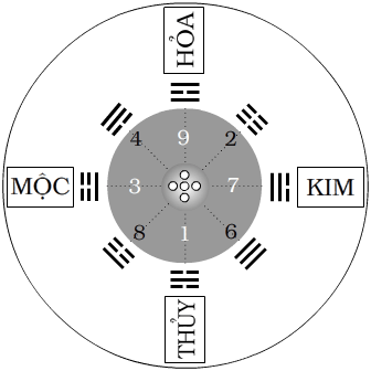 Còn bốn phụ phương Đông Bắc, Tây Nam, Đông Nam, Tây Bắc thuộc hành gì thì Hổng phạm thiên thư không cập tới. Vậy làm sao biết Tốn mộc, Kiền kim, Cấn Khôn thổ ? Lại nữa, lẽ ra mỗi quái có một hành như Ly, Khảm mới phải, nhưng tám quái chỉ có năm hành là sao ? Thưa rằng câu hỏi không dễ trả lời, nhưng không phải là không thể.