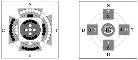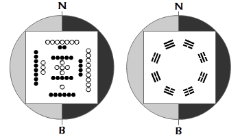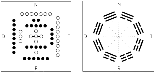 55 hạt tử trắng đen từng loại cho ra 5 số lẻ chẵn. TRÒN TRẮNG cho 5 số lẻ [ 1 3 5 7 9 ],TRÒN ĐEN cho 5 số chẵn [ 2 4 6 8 10 ]. Tròn trắng biểu lý dương nên [ 1 3 5 7 9 ] dương số. Tròn đen biểu lý âm nên [ 2 4 6 8 10 ] âm số. Định luật “ dương lẻ, âm chẵn ” là qui luật số rút ra từ HÀ ĐỒ SỐ PHỤC HY.