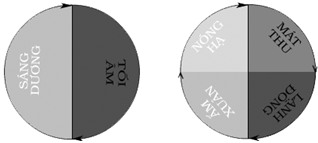 Địa cầu có ngày đêm. Ngày sáng trắng, đêm tối đen. Ngày ấm nóng, đêm mát lạnh. Phục Hy dụng hai màu đen trắng, tối sáng để đồ âm dương là ý bảo người dụng cảm ngày, cảm đêm mà cảm nghĩa âm dương vũ trụ. Ngày đêm xoay vòng, tối sáng xoay vòng, lạnh nóng xoay vòng thì âm dương phải xoay vòng là lý.