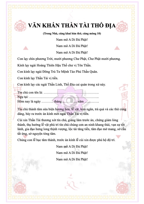 Văn khấn thổ địa tài thần Nam mô A Di Đà Phật! Nam mô A [...]