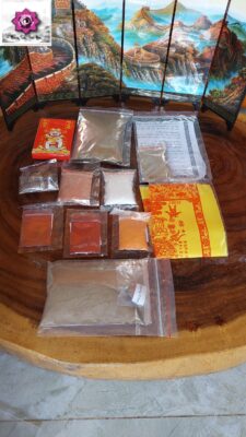 – 01 Bộ Tam Thần (Hay còn gọi là tam sa) gồm: Chu sa, Thần sa và Hùng Hoàng – Đây là 3 loại thần dược có tác dụng đặc biệt mạnh trong việc hàn long, hàn khí. Bộ tam sa này nếu sử dụng đúng cách thì là một vị thuốc trong đông y, còn trong phong thủy là một vật phẩm rất mạnh để trấn trạch, trừ tà khí, hỗ trợ hàn long mạch, địa mạch. Nếu sử dụng sai thì đây sẽ là một chất rất độc (Vì vậy cần sử dụng đúng theo hướng dẫn, tuyệt đối không đun nấu hoặc hòa bằng nước nóng, chỉ sử dụng cùng nước lạnh hoặc rượu).