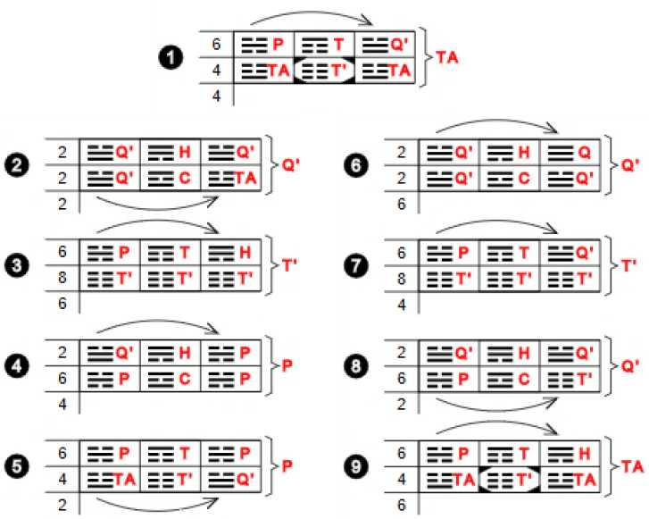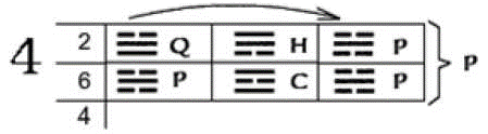 Không thời 4 chủ sự P mà P rất vượng vì có Q sanh P, nhưng vì không có TA hiện diện trong không thời này nên gia chủ chưa thể gặp được sự may mắn. Nơi đây Q động biến ra P ( Q > P) là cái ý thánh thần cho biết cái họa biến ra cái phước, người đàn bà mua vàng là người lương thiện.’ Mặt khác thánh thần muốn dùng không thời này để ám thị cho tôi biết cái địa thế xảy ra co> may ắt là cái vùng vượng thủy vì Khảm là thủy, mà đa thủy thì cái vùng đó không phải là nhỏ (3 quái khảm trong không thời = đa thủy):