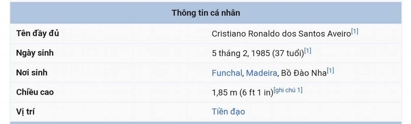 3- Và tên của CR7 là Cristiano Ronaldo, và thông số kỷ thuật như hình.