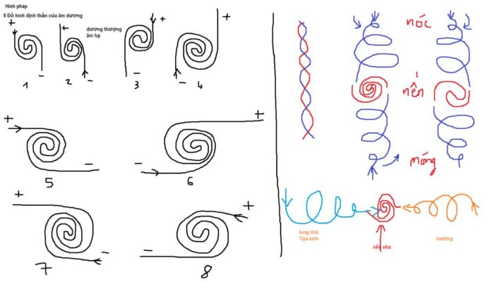 Từ sơ đồ vận hành âm dương nhị khí của hà đồ mà ta có mô hình vận động khí của hình pháp.