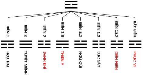 Bởi âm dương trừ cọng của đất trời tương tác với âm dương trừ cọng của phi cung bản mệnh làm nó biến đổi hào quái ví như phi cung Ly này bị biến hào :