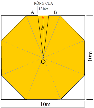 Độ rộng cửa chính diện 1.316 mét tương ứng chiều sâu 5 mét từ cửa tính đến tâm nhà. Vậy là để có một hình bát quái ( không bị khuyết ) tương ứng với độ rộng cửa chính diện thì vuông đất nền tối thiểu phải 100 nét vuông ( cạnh 10 x 10 ) :