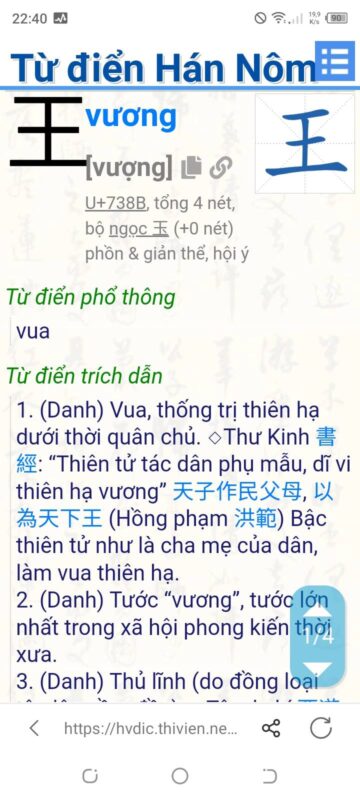 Nhưng nếu thêm trên đầu Chữ Hán tự “Vương” một nét phẩy, thì chữ đó trở thành Chữ Hán Tự “Chủ”, như chủ nhà, chủ tịch, chủ sự, dân chủ, v.v. Các chức vụ “Chủ” thông thường không phải là “Trời cho”, mà là “Người cho”. Các đương sự thụ hưởng chức vụ “Người cho” đó, phải hành xử thế nào với thành viên của cộng đồng liên hệ, mới được hưởng chức vụ “Chủ”, mà cộng đồng đó giao cho, thông thường trong một thời gian có hạn mà thôi”.