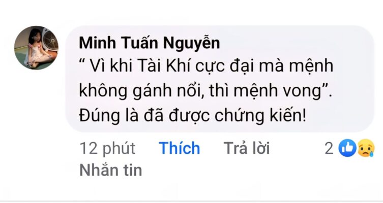 Trước hết, cảm ơn bạn Tuấn đã để lại bình luận về sự ứng nghiệm.