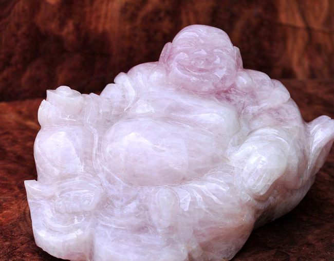 Phật Di Lạc được tạc bằng đá Ngọc Canxit Hồng sẽ đem lại năng lượng sinh khí cho gia chủ .