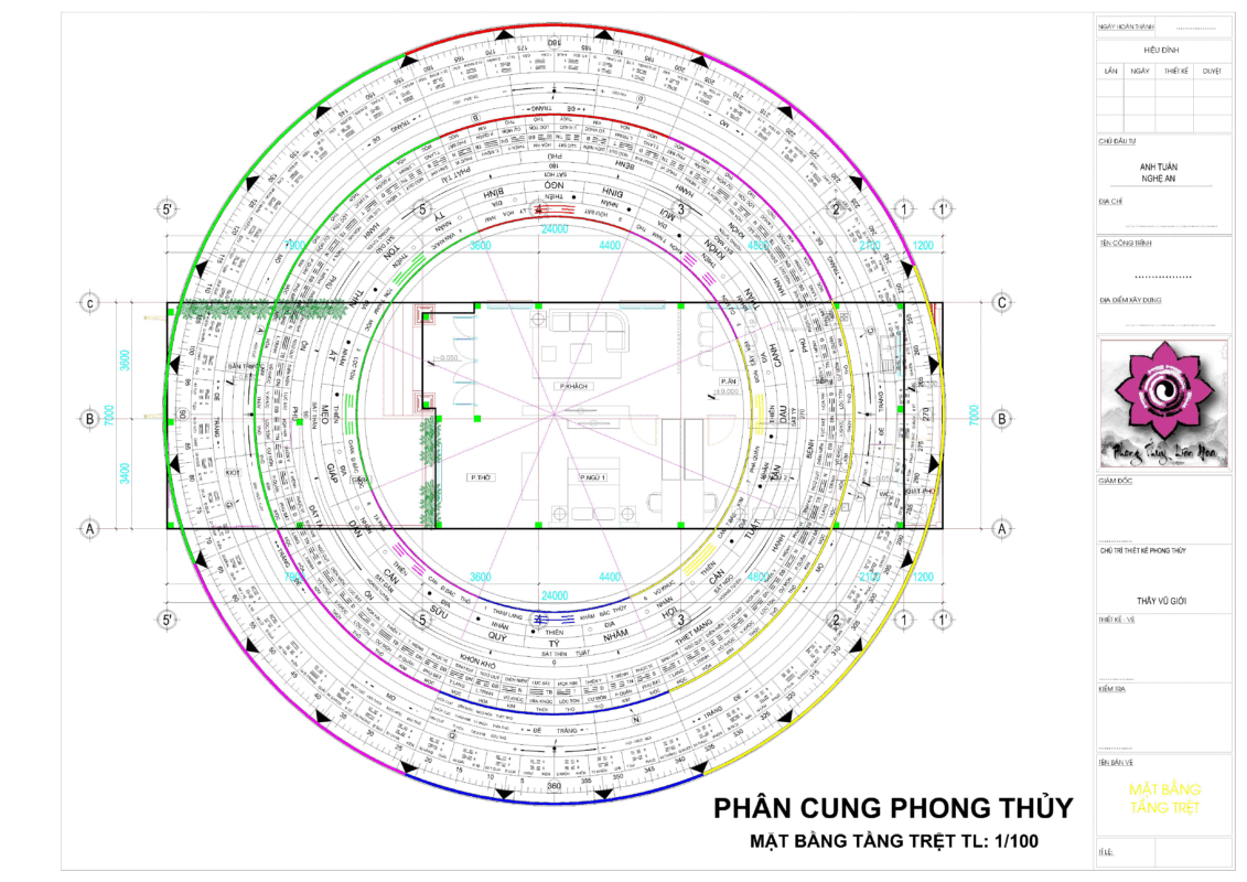 Hình : Ảnh thực tế phân cung điểm hướng công trình phong thủy trong Autocad