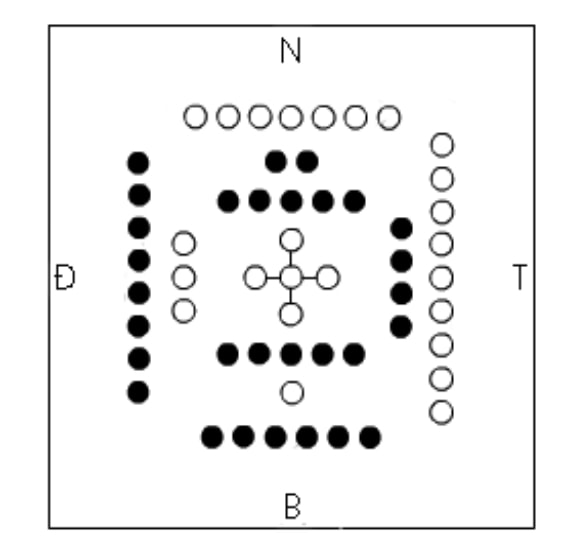 Đồ hình âm dương này bao gồm các chấm tròn trắng và đen . Chấm tròn đen là chấm âm và tròn trắng gọi là chấm dương. Hà đồ là mật mã âm dương của vũ trụ.