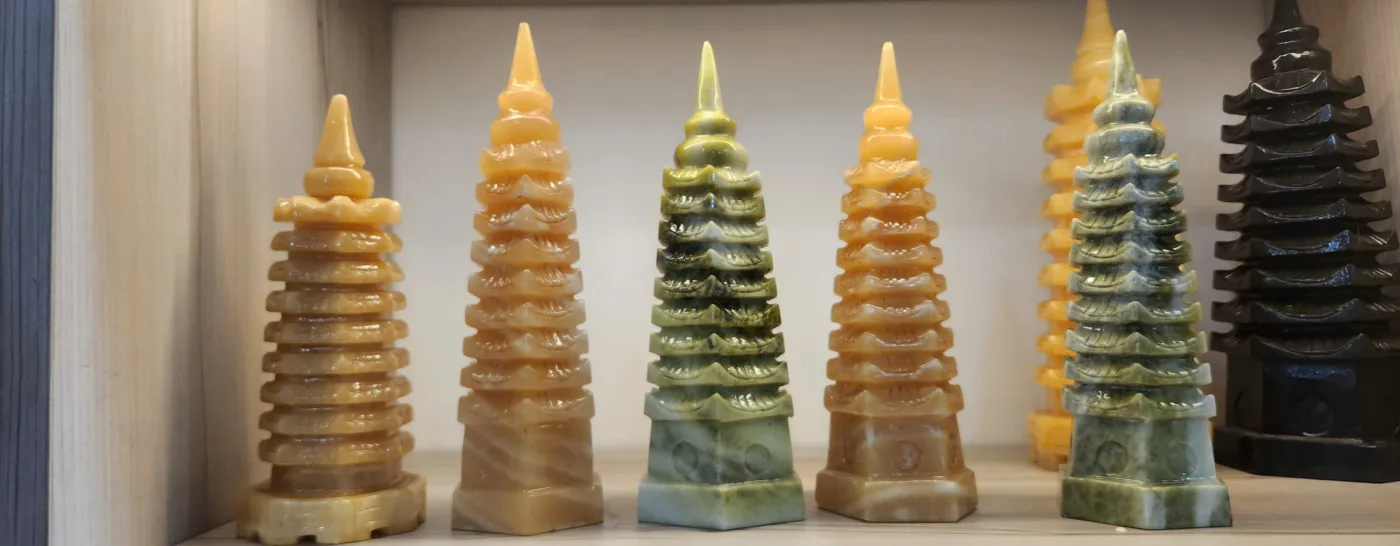 Gốm sứ: Tháp làm từ gốm sứ không chỉ có hình thức đẹp mắt mà còn dễ tạo ra năng lượng phong thủy tốt. Đây là sự lựa chọn phổ biến khi muốn tạo ra một không gian ấm cúng và gần gũi.