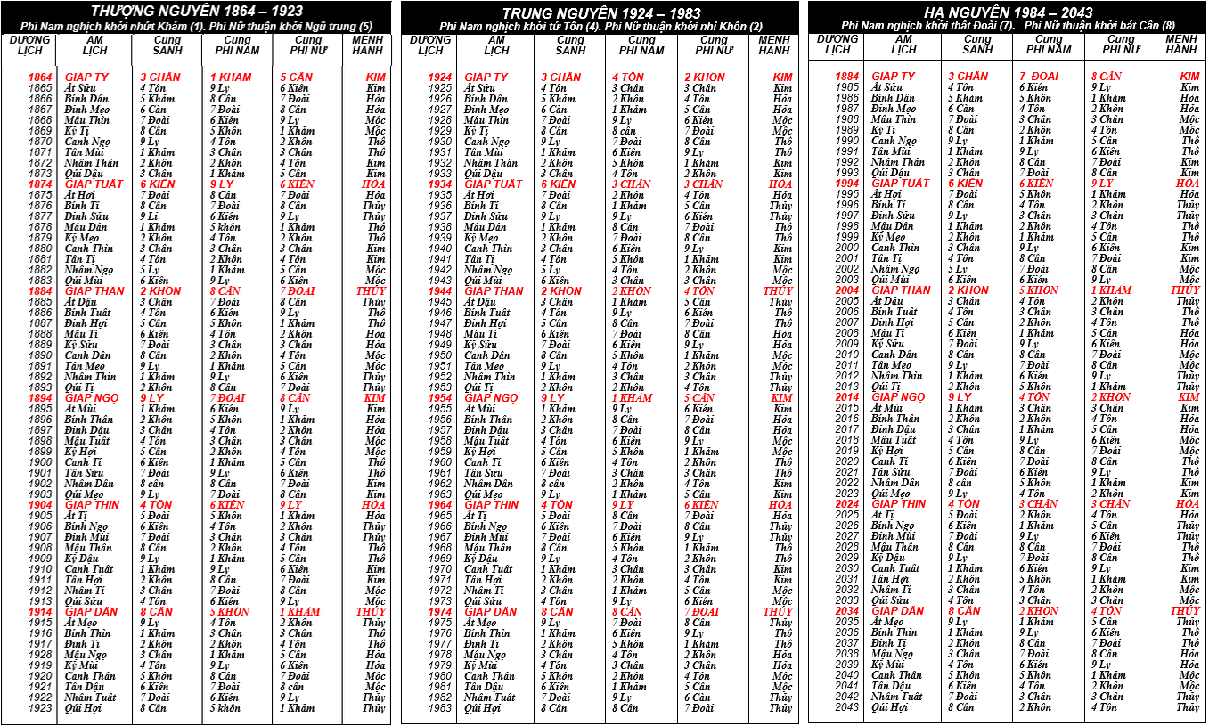 Người sanh từ 1984 – 2043 tra bảng HẠ NGUYÊN